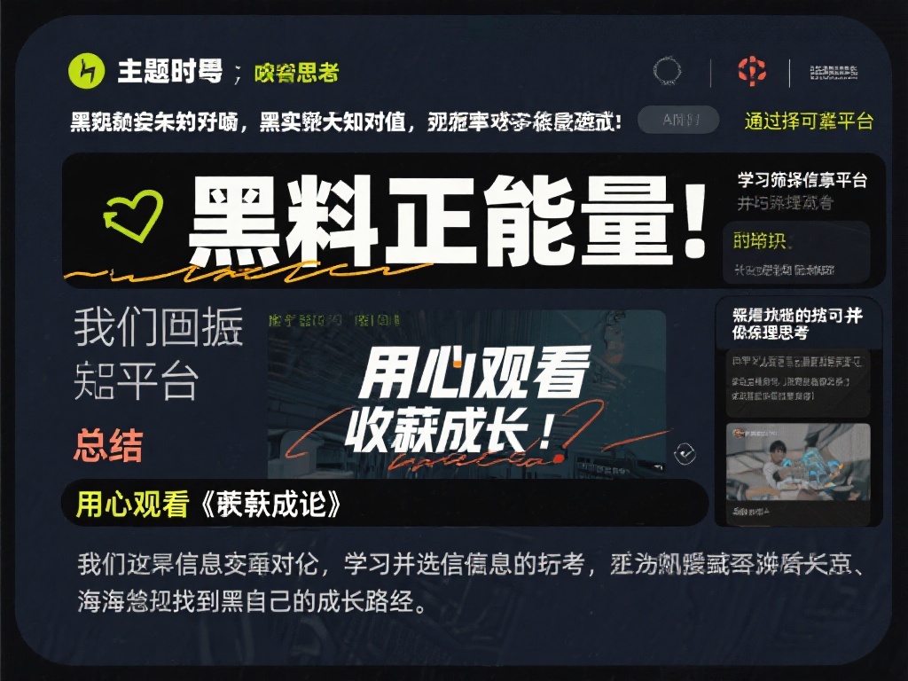 在探索“黑料正能量在线观看”这一话题时,您可能会发现关键词呈现了两个重要方向:“黑料”的吸引力和“正能量”的导向性。如何平衡这二者关系?以下几点值得关注: